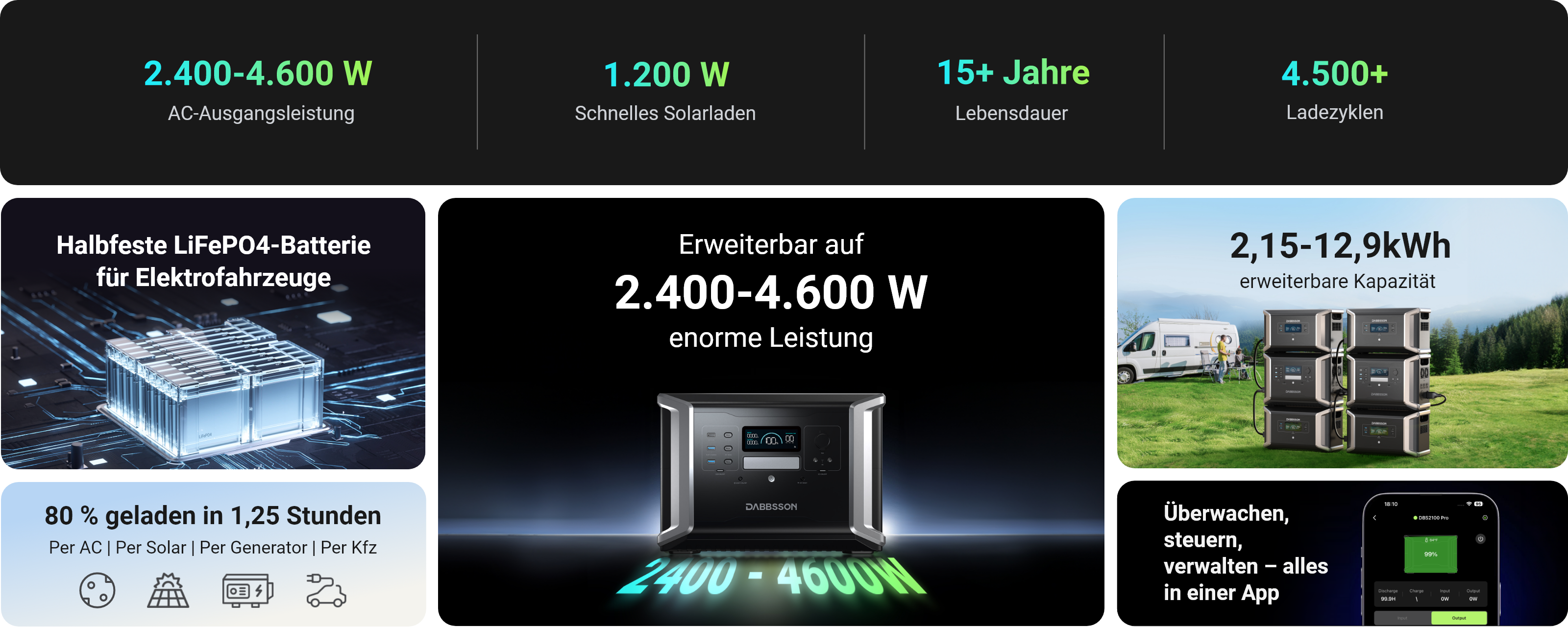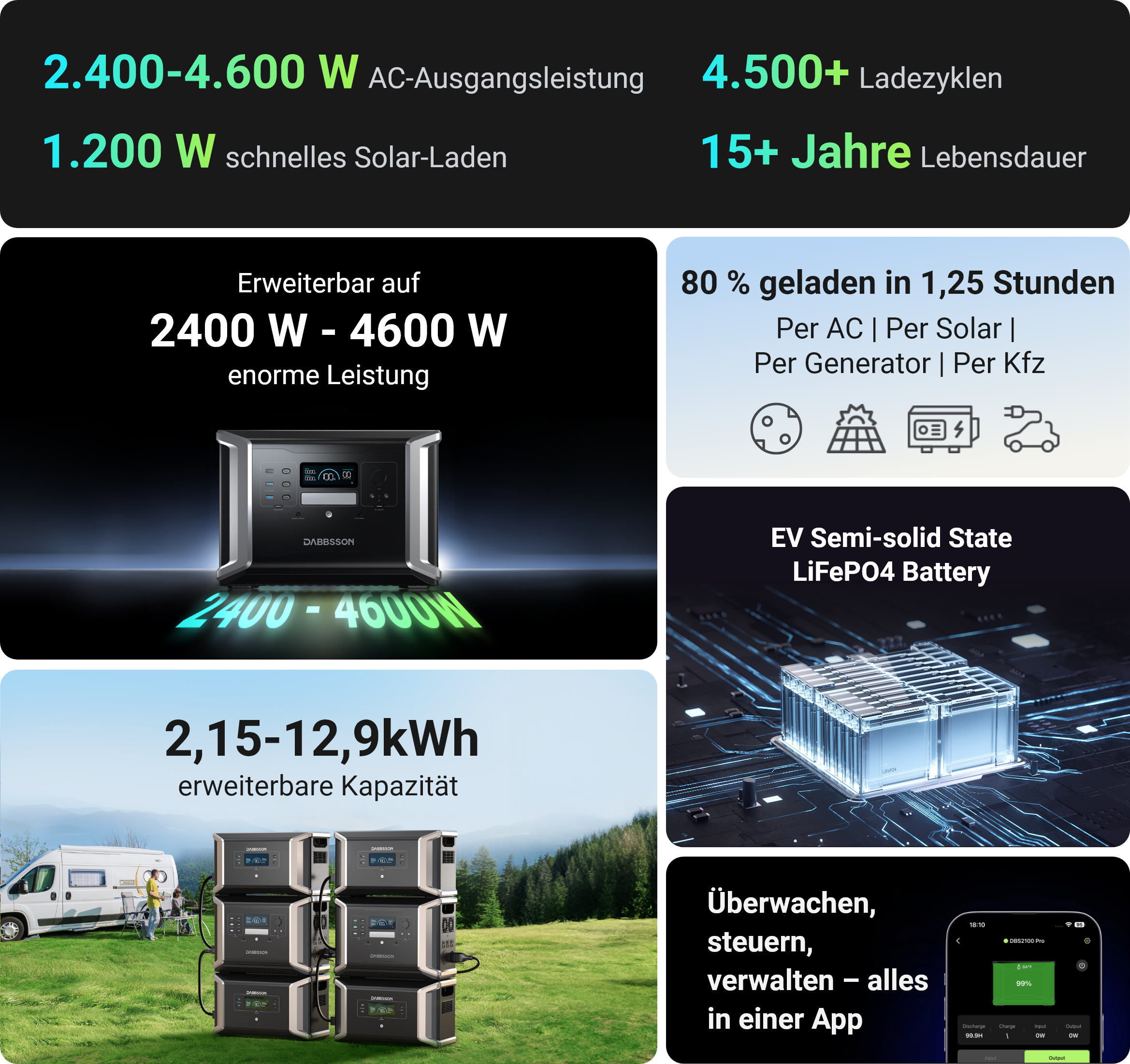 - Intelligente Energieverwaltung über die Dabbsson App.