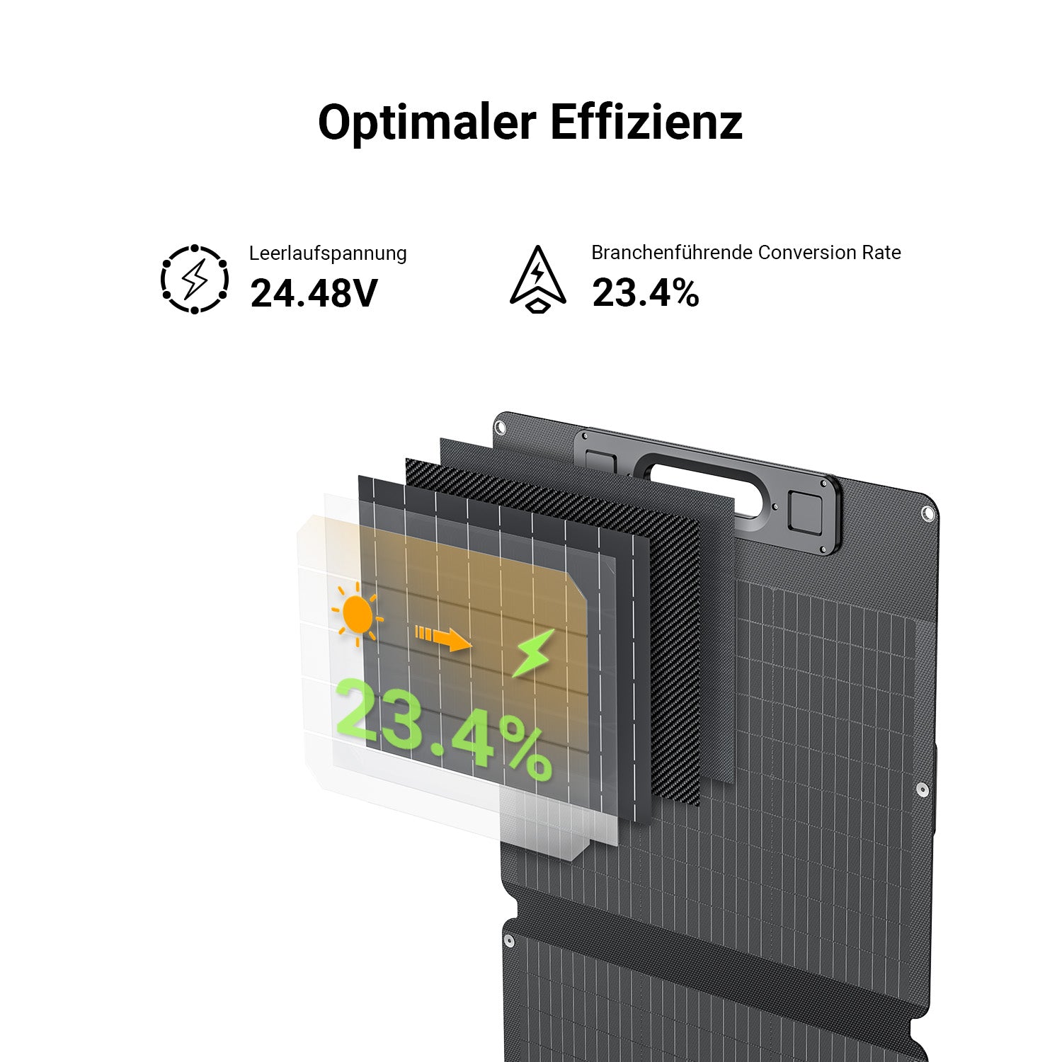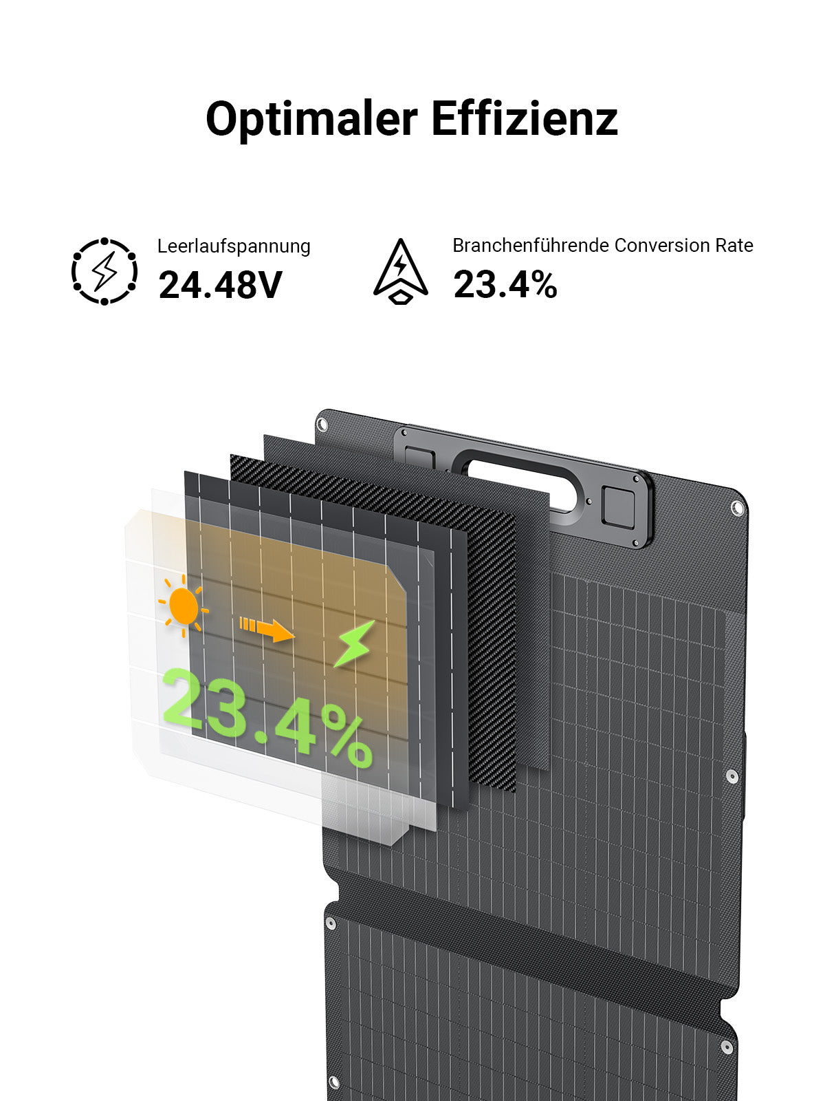 - Ausgezeichneter Wirkungsgrad der Solarumwandlung - Monokristalline Solarzellen haben einen Wirkungsgrad von bis zu 23.4% und stellen sicher, dass Sie mehr Energie für den Betrieb Ihrer Geräte gewinnen.