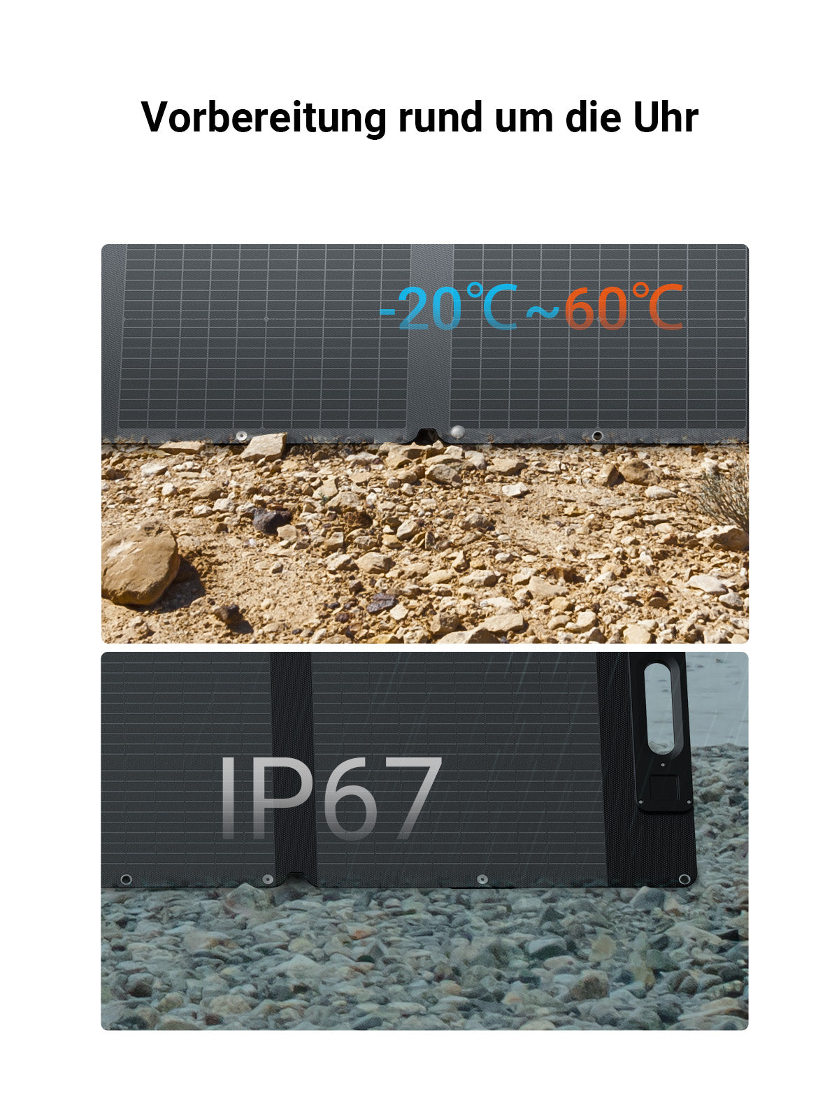 - Schnelles & einfaches Aufladen - Mit unserem 210W Solarpanel können Sie jetzt ein blitzschnelles Aufladen Ihres Solargenerators erleben. Es dauert nur 6 Stunden, um einen 500Wh Solargenerator vollständig aufzuladen!