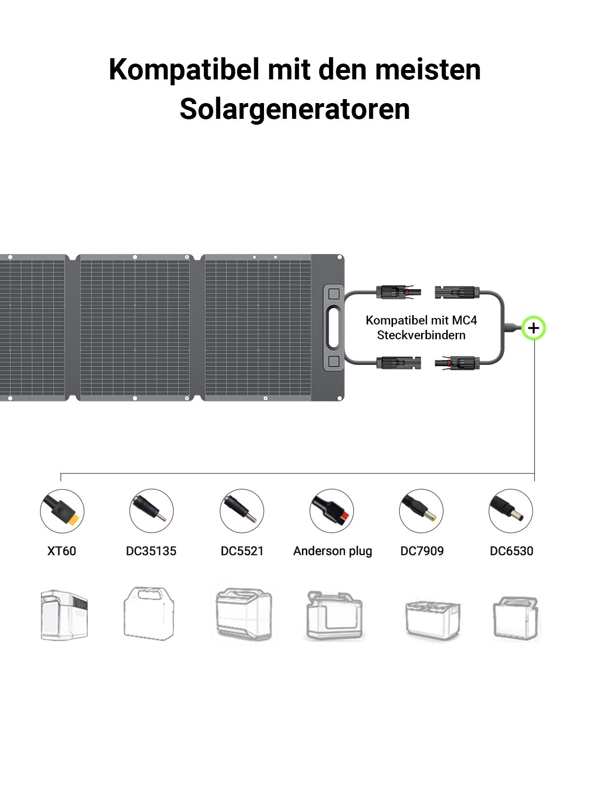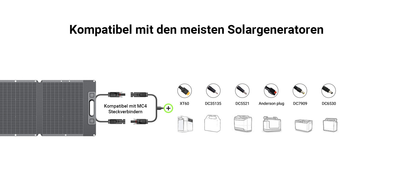 - Kompatibel mit allen - Kompatibel mit den meisten Solargeneratoren mit MC4-Anschlüssen.